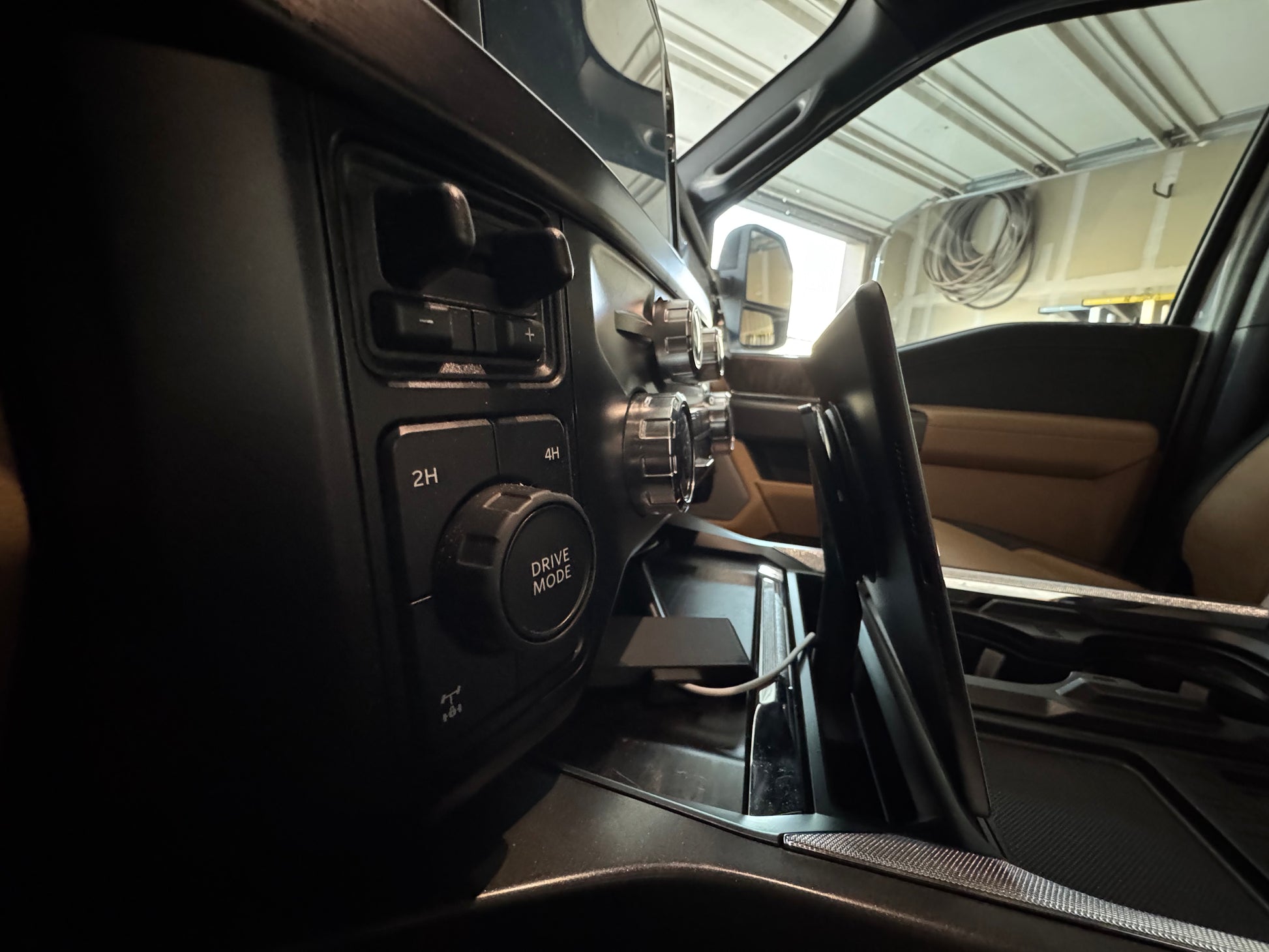 Designed specifically for 2023 and newer Super Duty trucks (e.g., F-250, F-350), this mount seamlessly integrates into your center console for a clean, factory look. -